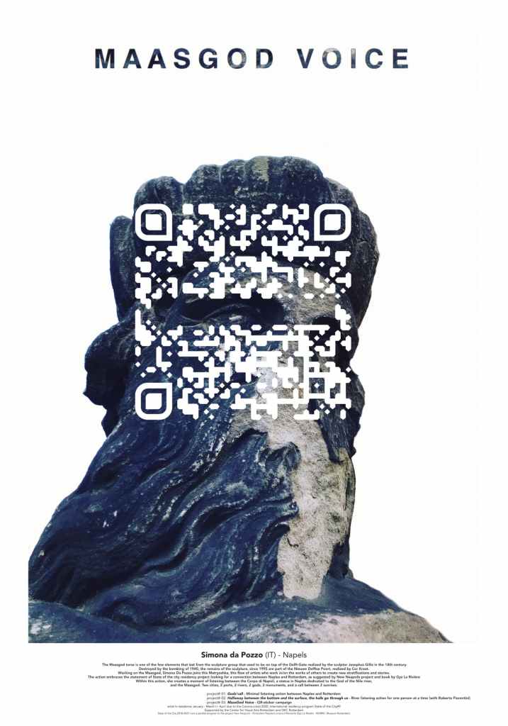 In this frame I’ve realized some works around the Maas God monument. Kamiel Verschuren has created a poster for each one of the projects/artists hosted. Here there is Maasgod Voice one: