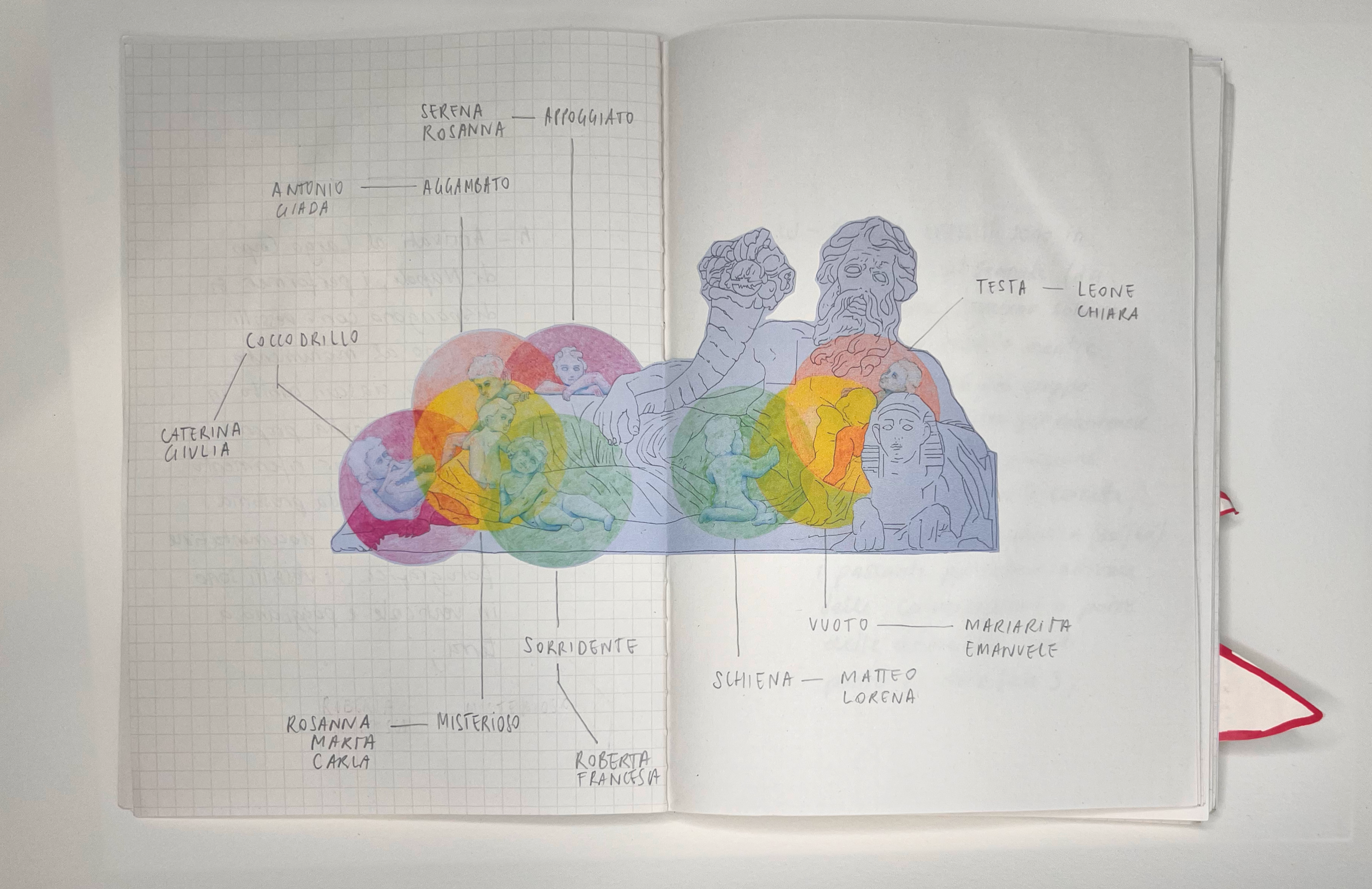 L’opera è anche un dispositivo che può essere attivato con una performance per rendere visibili alla cittadinanza le posizioni degli otto cubiti che, in forma di putti, circondavano la rappresentazione antropomorfa del Fiume Nilo, nota come Corpo di Napoli. Statua simbolo dei modi in cui gli umani si relazionano con l’ambiente e l’acqua.