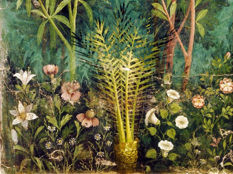 images: 1) Isis metamorphosed into a sycamore tree suckling Tuthmosis III. c. 1479-1425 BC, wall painting, Egyptian 18th Dynasty | 2) Giardino dei Capezzoli, Naples 3) Hydrangea fossil | 4) The frescoes of the House of the Golden Bracelet, Pompei | 5) morphology of a cigarette butt