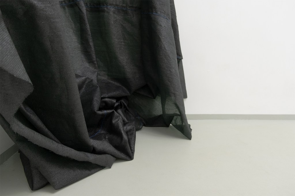 Plastic derivative shade stitched and cut out according to the shape of the shadow cast by an Erythrina Caffra tree on Piazza Mazzini (Naples) in 2022.
