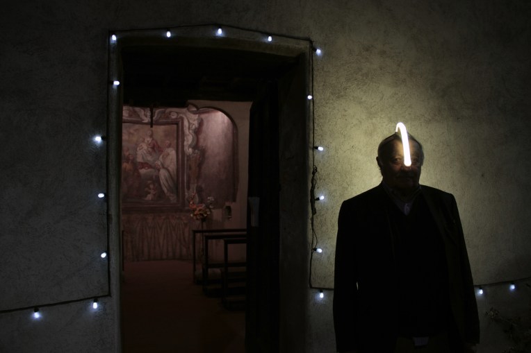 The shots portray the inhabitants involved while they illuminate a place chosen by them by wearing a Luminescent Bone. The portraits are the result of the relationship established between the people involved during the nocturnal explorations: the inhabitants who point out the place, the artist who conducts the project, the curious passers-by.