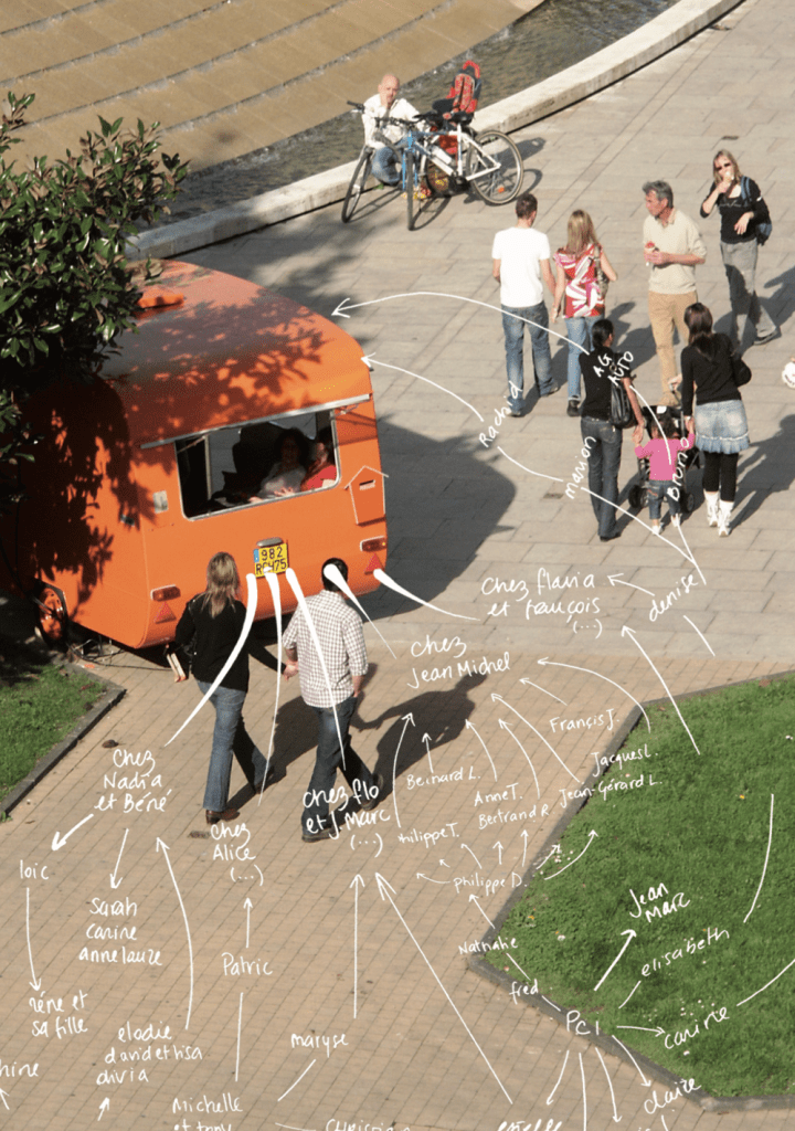 The appartements’ sounds change in real time the nature of the installation: in a caravan are recreated while some instants, the ambiance of a domiciliary hairdresser, of a household colloquium…