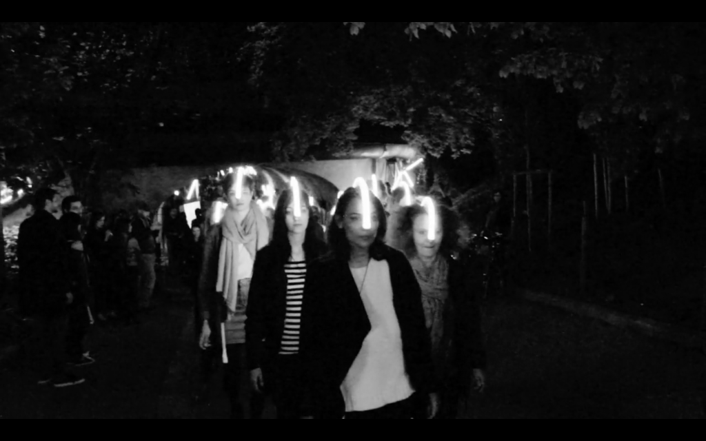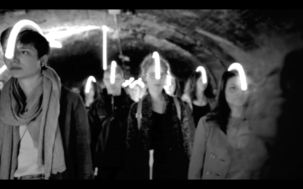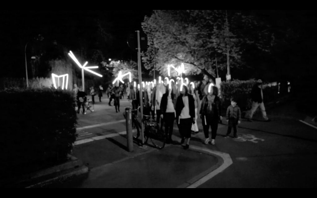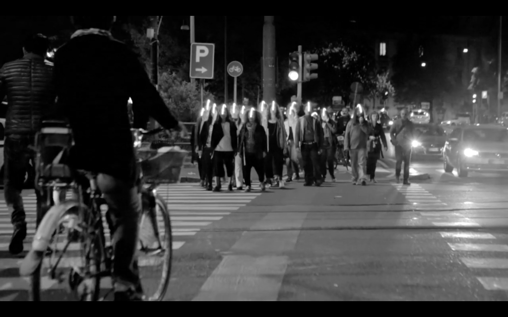 Participative urban performance, 33 Luminescent Bones and 33 inhabitants of Milan 2016