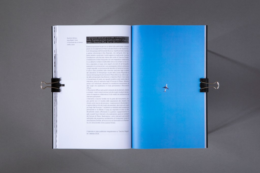 Writings by: Nicola Ciancio e Simona Da Pozzo, Sara Bramani e Valentina Mutti, Gabi Scardi, Stefano Serusi / Editorial coordination: Simona Da Pozzo / Editorial review: Isabella Mara / Graphic design and layout: Cecilia Di Gaddo / Photo editing: Emilia Castioni / Sprinting: Tipolitografia Lucchi, via Enrico Cialdini 82, 20161, Milano /photos by © Blanka Studio; © Lorenzo Bruscaglioni; © Emilia Castioni; © Simona Da Pozzo / Map © DASTu, graphic design by Cecilia Di Gaddo.